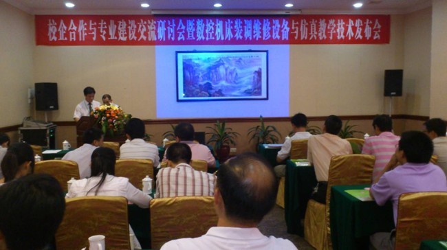 2011年9月23日校企合作與專業(yè)建設(shè)研討會(huì)暨數(shù)控機(jī)床裝調(diào)維修實(shí)訓(xùn)考核設(shè)備與數(shù)控機(jī)床裝調(diào)維修仿真教學(xué) 技術(shù)(江門地區(qū))發(fā)布會(huì)在江門市逸豪酒店(五星級(jí))圓滿召開。會(huì)議得到了相關(guān)部門的大力支持,來自江門市各 地區(qū)大學(xué)、中高職院校、技校共十多家單位四十多名分管教學(xué)副校長(zhǎng),系部主任,專業(yè)帶頭人及相關(guān)專業(yè)老師參 加了本次會(huì)議。