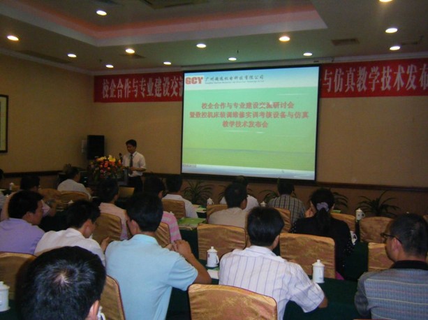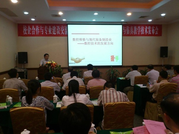 華南理工大學(xué)宋小春教授針對(duì)數(shù)控裝調(diào)維修人才培養(yǎng)的前景和形式結(jié)合現(xiàn)代制造業(yè)的大背景進(jìn)行了詳細(xì)的分 析;公司董事長(zhǎng)兼總經(jīng)理吳玉華詳細(xì)介紹了數(shù)控機(jī)床裝調(diào)維修專業(yè)建設(shè)新思路和新模式,專業(yè)技術(shù)學(xué)習(xí)如何與國(guó) 家職業(yè)技能鑒定考核對(duì)接,如何實(shí)現(xiàn)數(shù)控裝調(diào)維修成套設(shè)備和仿真技術(shù)在教學(xué)中的融合,打造理實(shí)一體化、互動(dòng) 的教學(xué)實(shí)訓(xùn)場(chǎng)地;公司董事楊總針對(duì)校企合作,指出了現(xiàn)有合作模式的利與弊,并深入探討GCY校企合作模式及范 圍,闡述了校企合作所帶來的價(jià)值。
