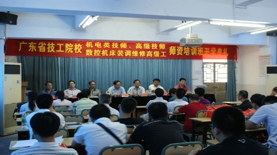 為加快我省數(shù)控機床裝調(diào)維修工人才培養(yǎng)步伐,提高全省技工院校數(shù)控機床維修專業(yè)的師資隊伍建設, 由廣東省職業(yè)技術(shù)教研室牽頭,省國防高級技工學校與我司共同承辦的廣東省技工院?!皵?shù)控機床裝調(diào)維修 工(高級工)師資暑期培訓班”(也是我司承辦的第五期全省數(shù)控裝調(diào)維修工培訓班),在國防技校歷時20 天的緊張學習、培訓與考核,于2011年8月7日圓滿結(jié)束,來自全省20所技工院校近40名專業(yè)教師參加了本次培 訓,各學員通過培訓學習了解了我司GCY數(shù)控機床裝調(diào)維修成套設備及仿真教學考試平臺,深入學習了數(shù)控機 床的電氣安裝、機械調(diào)試、故障檢測與排除及GCY仿真軟件功能等內(nèi)容,全面學習了機械和電氣一體化教學的 實際應用,全面了解了數(shù)控機床裝調(diào)維修專業(yè)建設新思路和教學新模式,以及如何與國家職業(yè)技能鑒定考核 對接,如何實現(xiàn)數(shù)控裝調(diào)維修成套設備和仿真技術(shù)在教學中的融合。學員們學習興趣濃厚,甚至要求延長學 習培訓時間,夜晚加班學習。