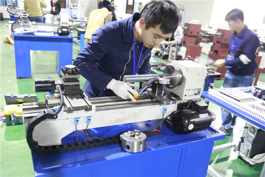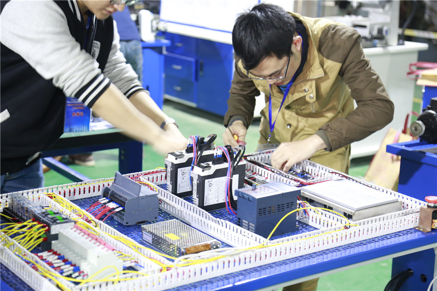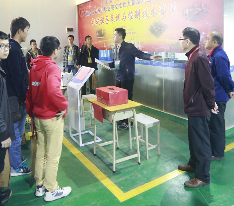 2016年1月10日,由廣東省教育廳主辦,廣東工貿(mào)職業(yè)技術(shù)學(xué)院承辦,廣州超遠(yuǎn)機(jī)電科技有限公司協(xié)辦的2015年廣東省高職技能大賽暨2016年全國(guó)職業(yè)院校技能大賽高職組廣東省選拔賽『機(jī)械設(shè)備裝調(diào)與控制技術(shù)』賽項(xiàng)在超遠(yuǎn)中山工廠順利閉幕。該賽項(xiàng)以機(jī)電設(shè)備裝配與調(diào)試技術(shù)為背景,要求選手在規(guī)定時(shí)間內(nèi)完成機(jī)械部件的裝調(diào)、電氣接線、PLC及觸摸屏的設(shè)計(jì)等模塊。