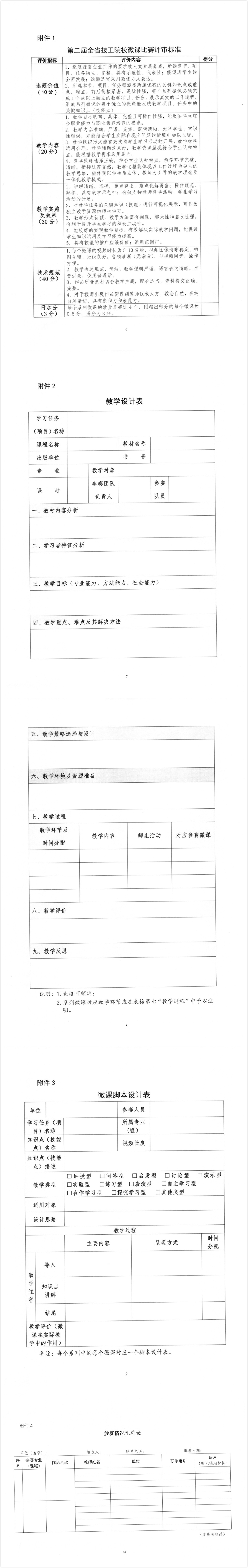 3.請參賽教師務必認真填寫“教學設計及微課腳本設表”(見附件2、3),將作為教師參賽的重要評選資料。