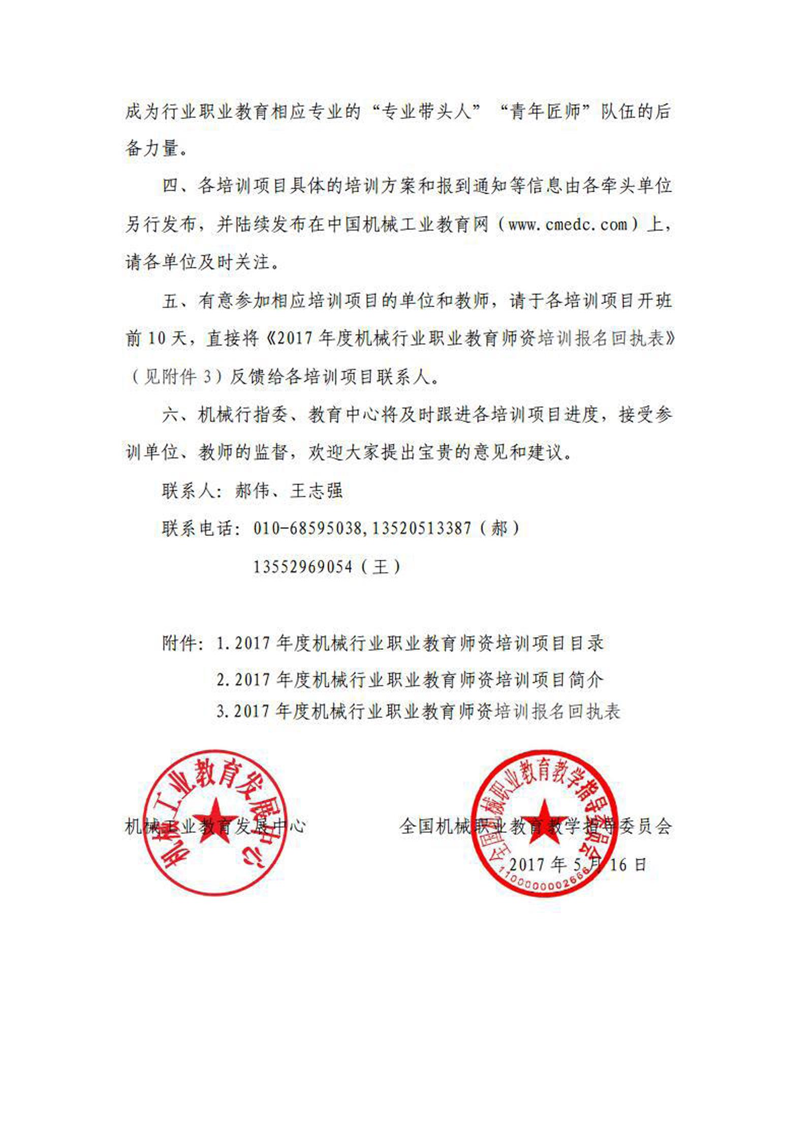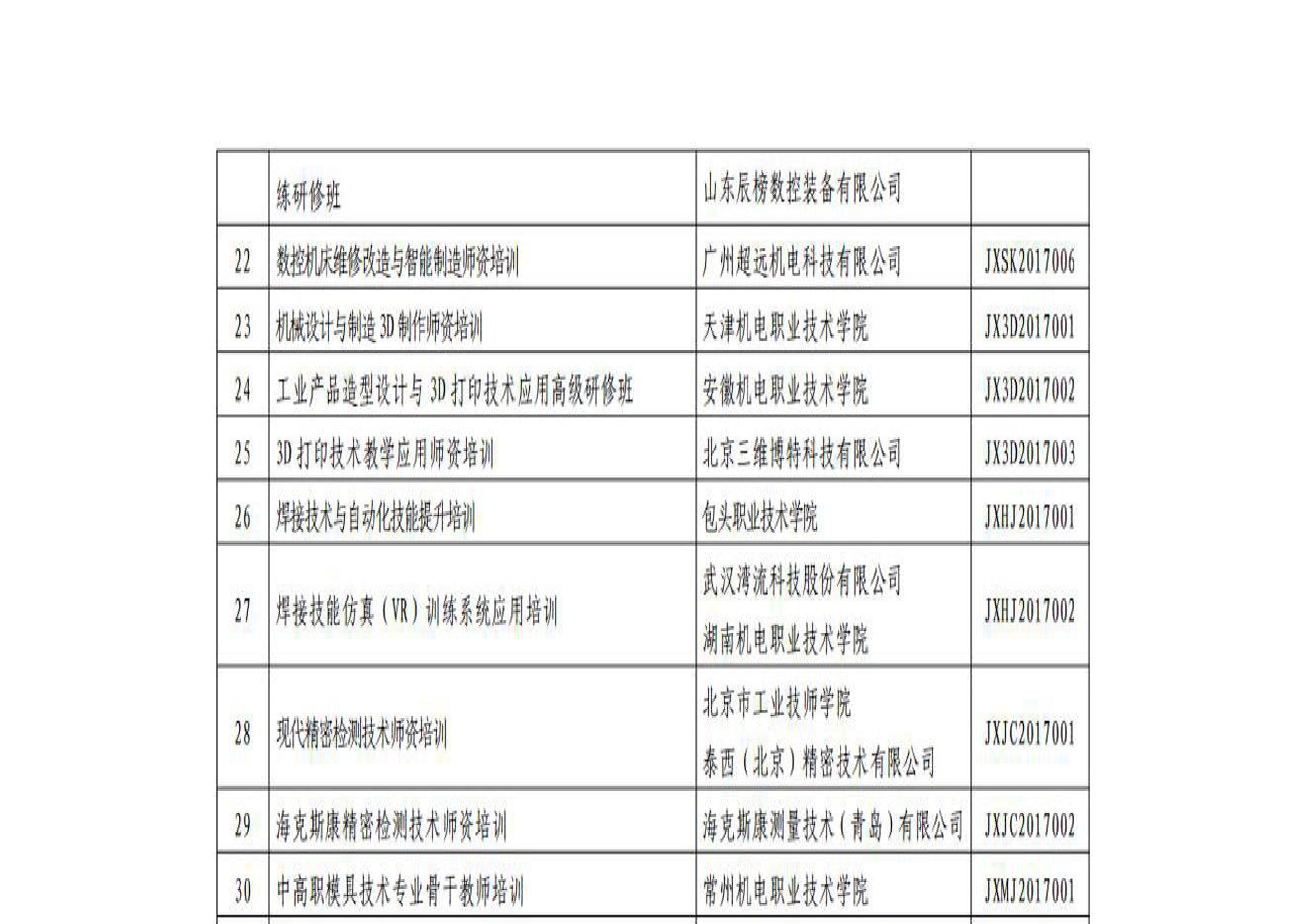 2017年全國機械職業教育師資培訓項目之“數控機床維修改造與智能制造師資培訓”研修班的 補充通知