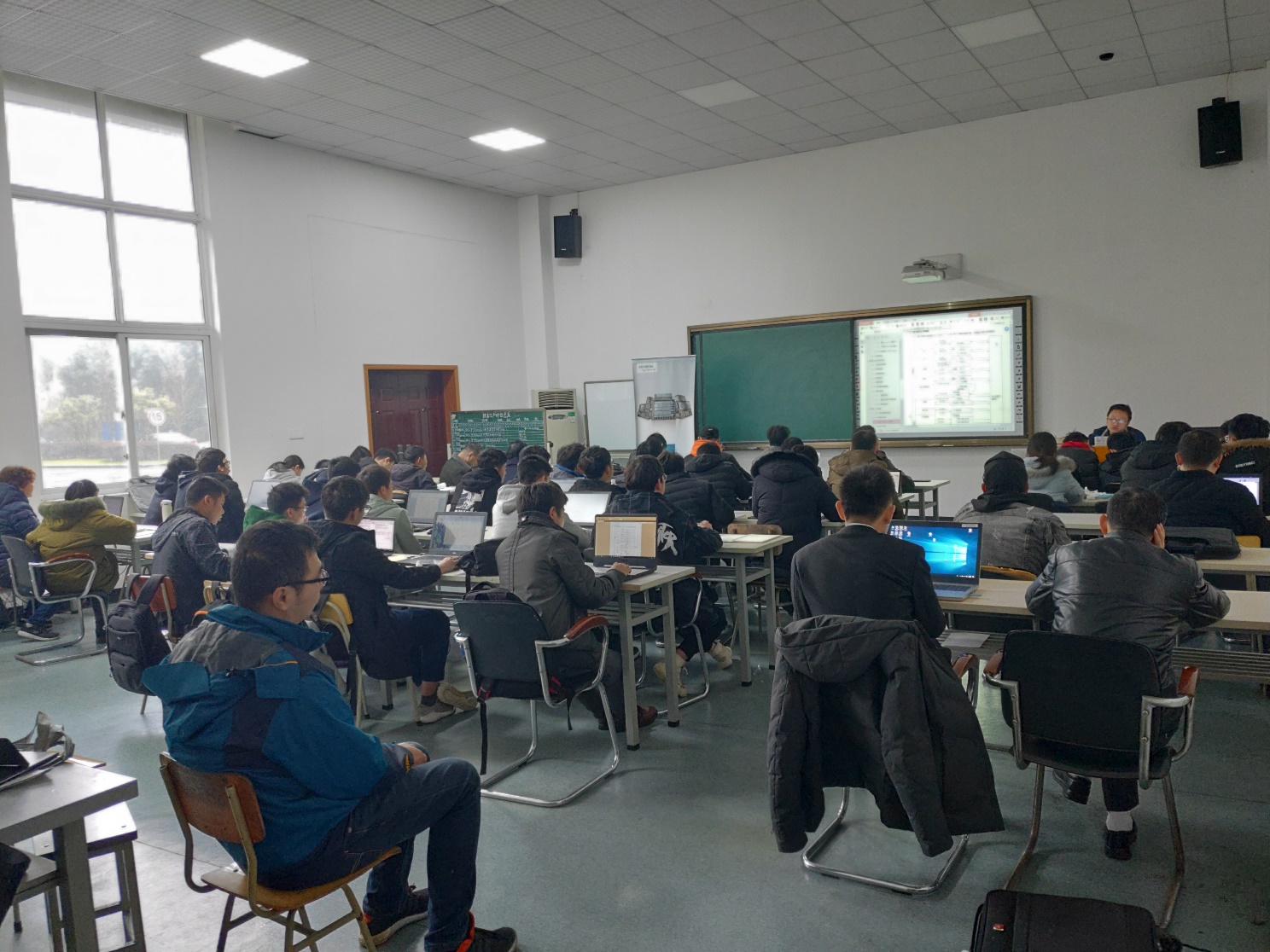 圖:西門子工程師為師生們演示系統(tǒng)調(diào)試