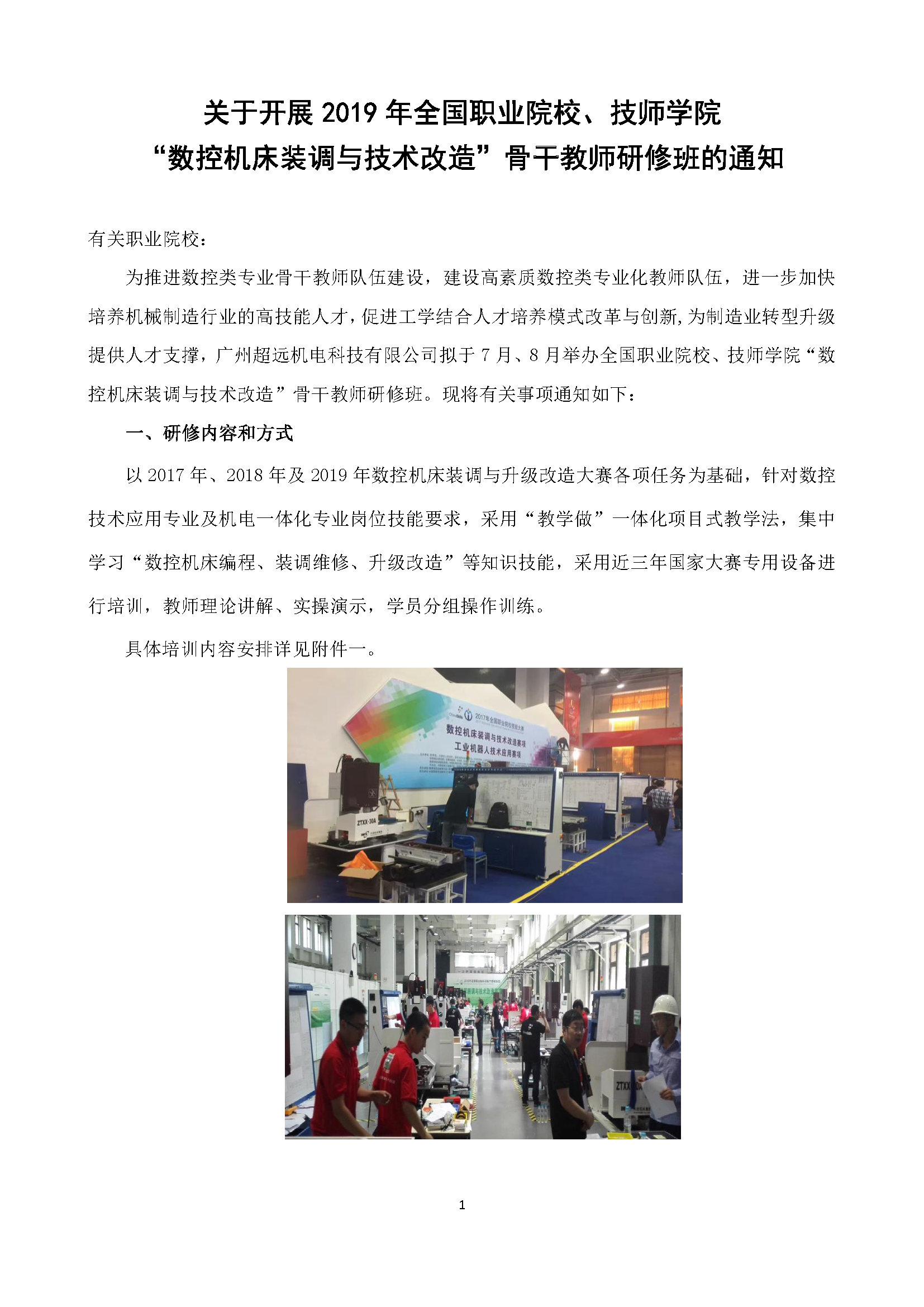 關于開展2019年全國職業(yè)院校、技師學院“數(shù)控機床裝調(diào)與技術改造”骨干教師研修班的通知
