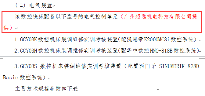 規程中“十、技術平臺,(二) 電氣裝置”明確寫明電氣控制單元由廣州超遠機電科技有限公司提供,詳見以下規程截圖。