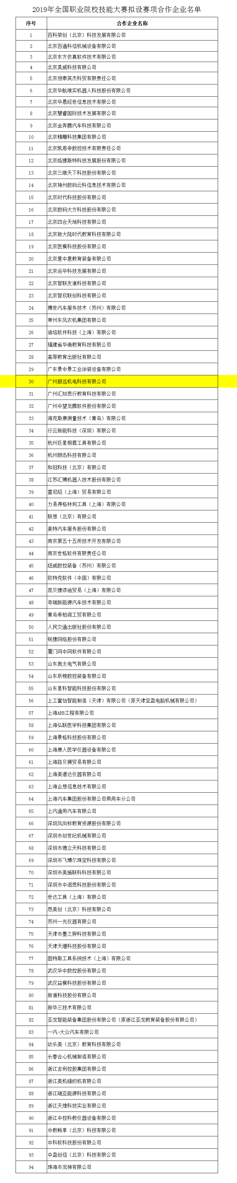 共遴選出94家企業(yè)作為2019年大賽擬設(shè)賽項(xiàng)合作企業(yè)。