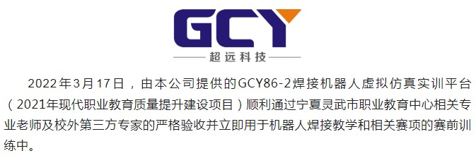 寧夏靈武市職業教育中心2021年現代職業教育質量提升建設項目焊接機器人虛擬仿真實訓平臺順利通過驗收