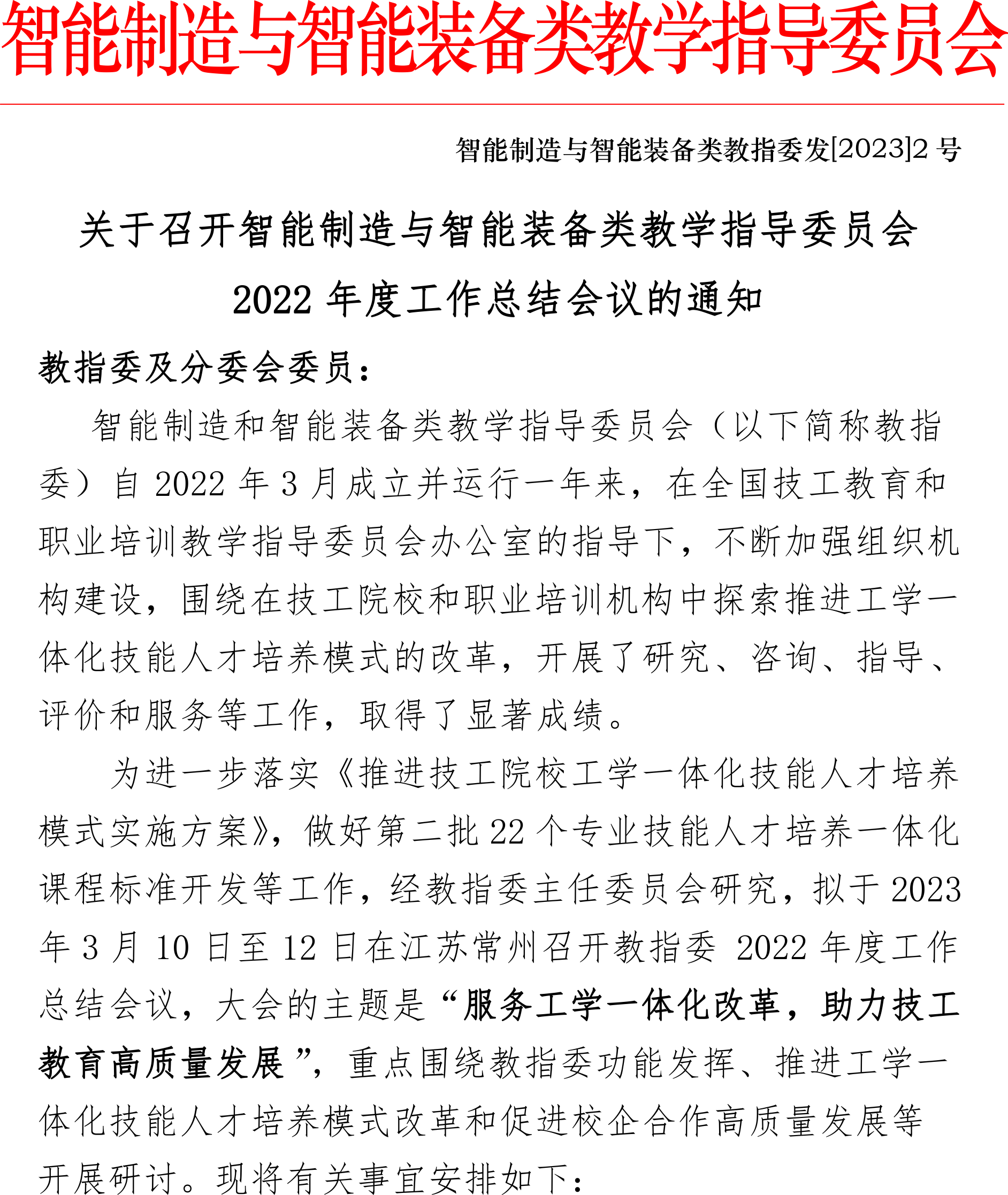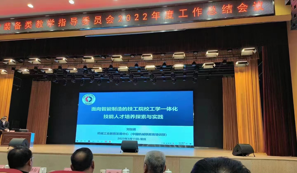 智能制造與智能裝備類教學指導委員會2022年度工作總結會在江蘇常州圓滿完成!大會的主題是“服務工學一體化改革,助力技工教育高質量發展”,大會重點圍繞教指委功能發揮、推進工學一體化技能人才培養模式改革和促進校企合作高質量發展等開展研討,我司吳玉華總經理應邀參加。