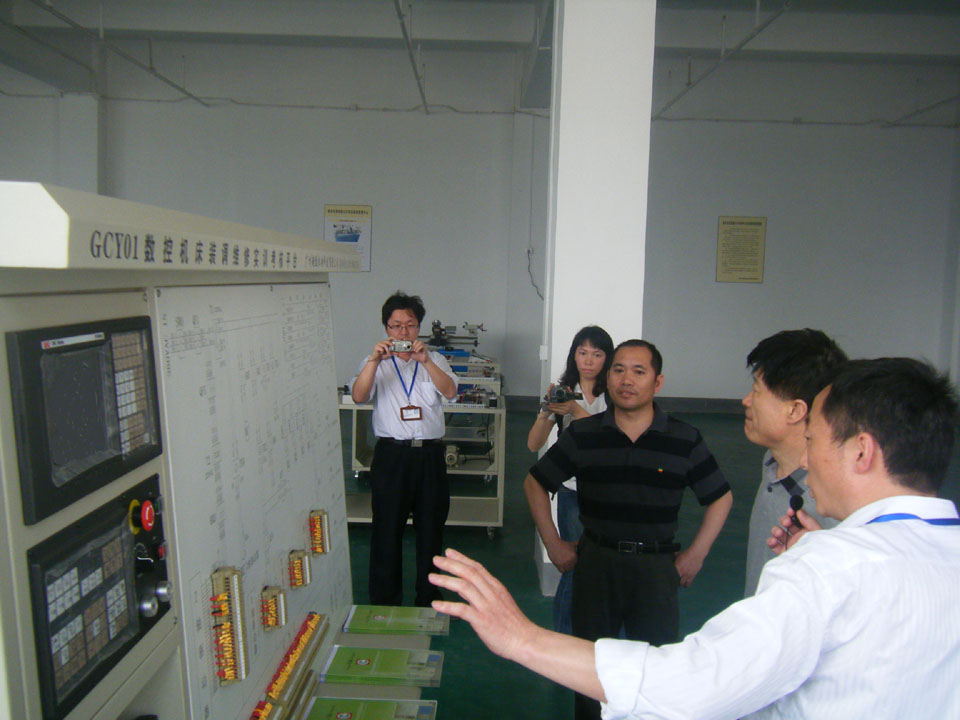 2011年4月26日,廣東省鑒定工作會議在韶關召開,各地市分管鑒定工作的局長和鑒定中心主任參加了本次會議,廣東省人力資源與社會保障廳張鳳歧副廳長作了重要講話,會議期間參觀了韶關市職業技能鑒定指導中心的高技能實訓基地,該基地的數控機床裝調維修實訓室全部采用本公司的GCY數控機床裝調維修實訓考核成套設備和GCY數控機床裝調維修仿真軟件。