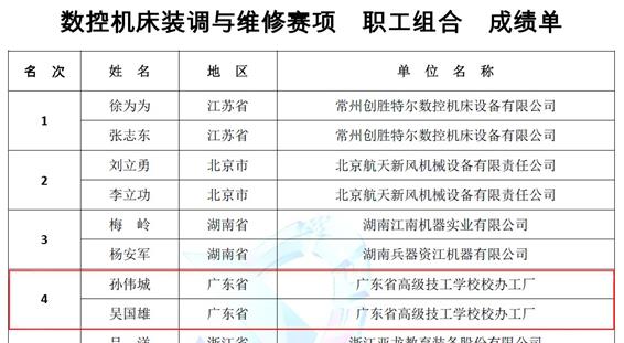 數控機床裝調與維修決賽廣東省代表隊取得優異成績