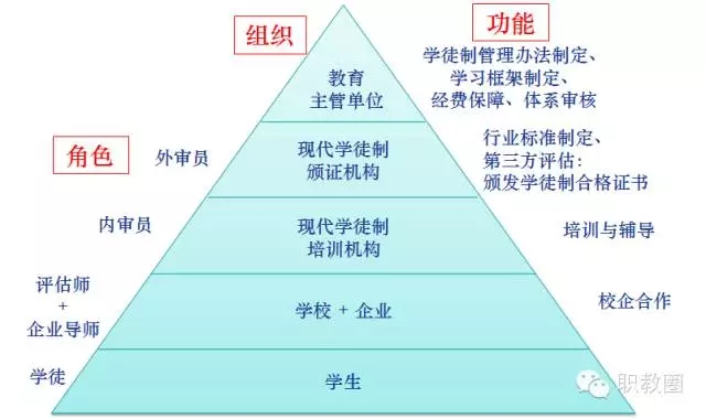 現代學徒制體系框架,主要是由學校、企業、培訓機構、頒證機構等多方參與構成的金字塔型體系構架,具體如圖2-1所示: