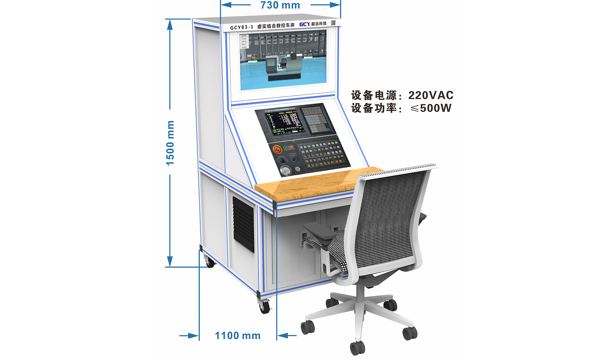 GCY83-1虛實結合數控車床既可獨立實訓練習,也可以接通實物機電設備并實現動作控制。該設備通過真實的數控車床控制系統(KND\GSK\HNC等系統)、場景系統及電氣控制電路等組成,由真實的數控車削系統及電路來控制虛擬場景中的車床運行動作。