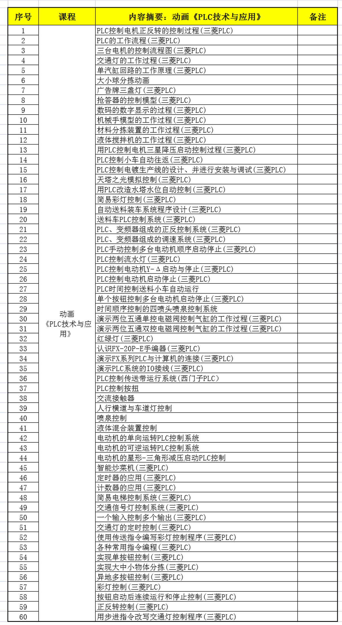 《PLC技術(shù)與應(yīng)用》教學(xué)資源——?jiǎng)赢?huà)資源清單