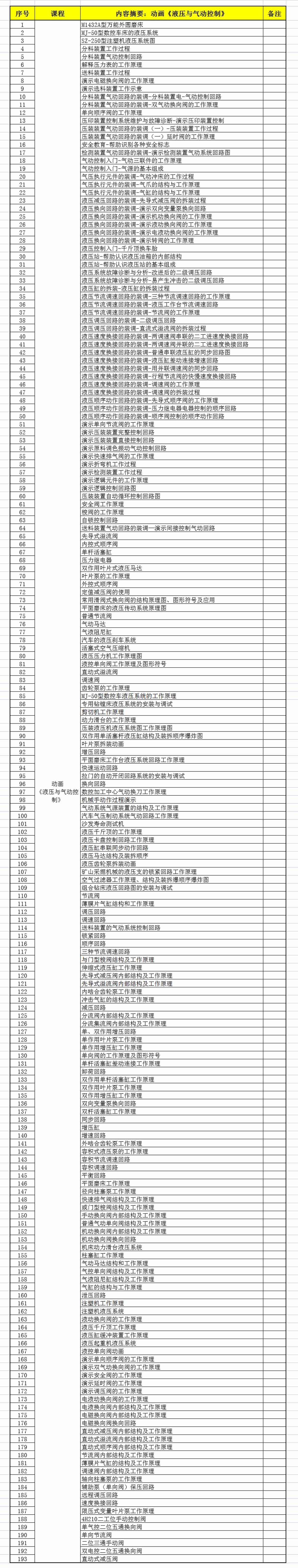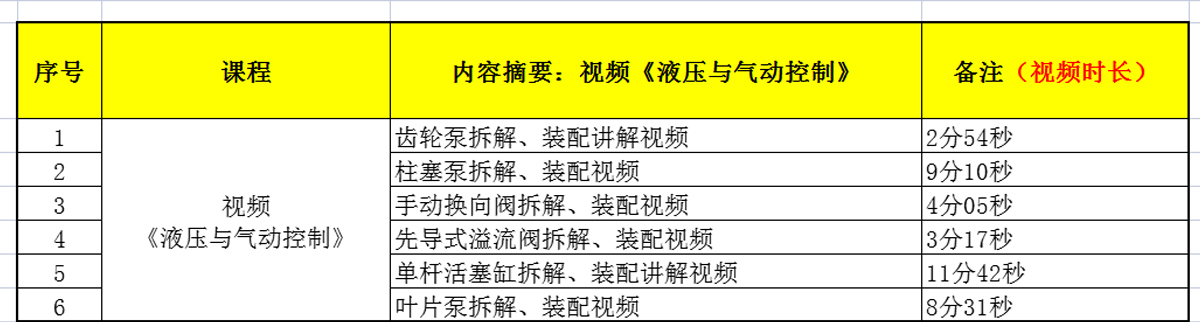 1.《液壓與氣動》教學資源——視頻資源清單