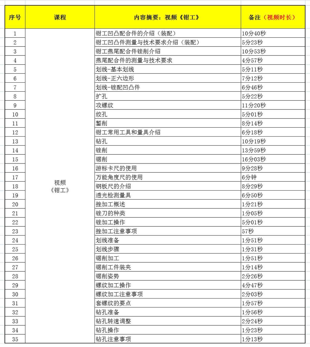 1.《鉗工》教學(xué)資源——視頻資源清單