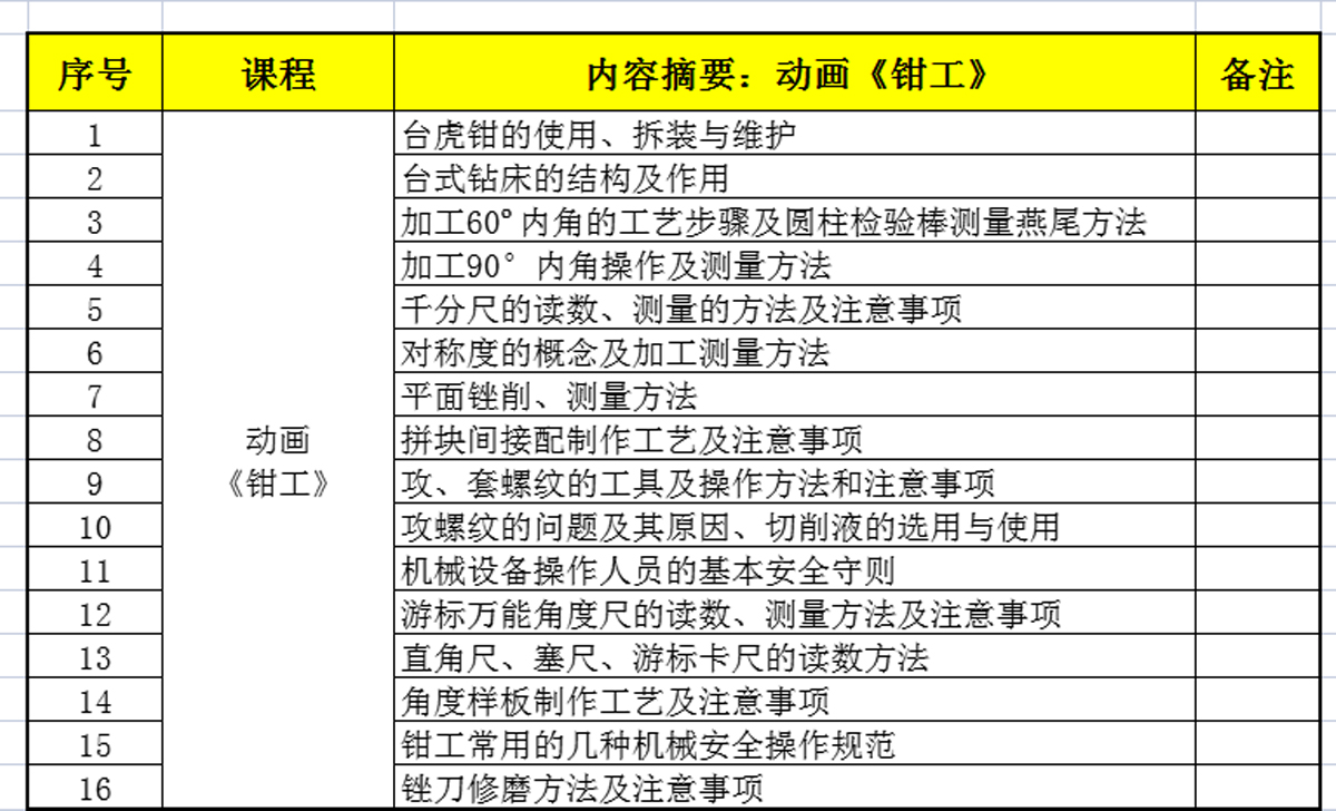 2.《鉗工》教學(xué)資源——動畫資源清單