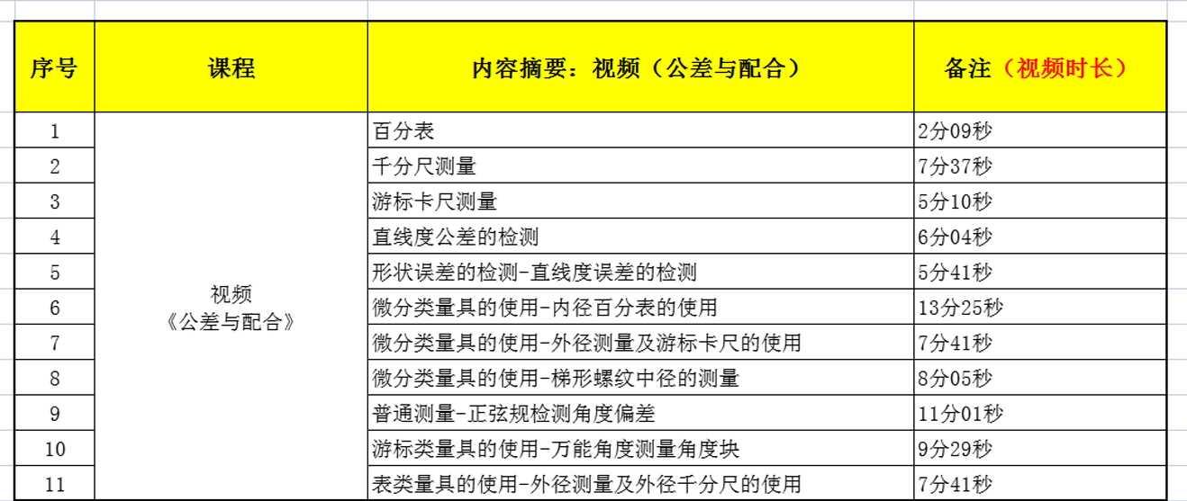 1.《公差與配合》教學資源——視頻資源清單